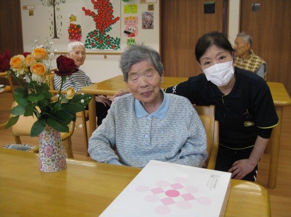 こんにちは! グループホームみんなの家・あきがせの介護ブログです! よろしくお願いいたします。 今日はご家族様:長男のお嫁様が来られお花をお持ちくださいました。