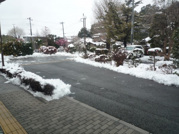 何人かの職員が雪かき。おかげでこの通り。