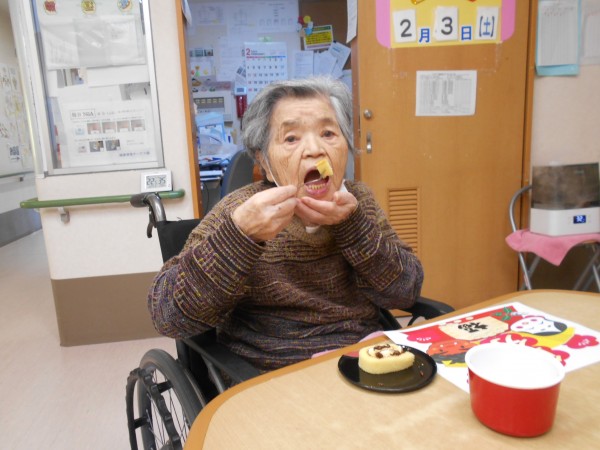 豆まき後のおやつの様子を