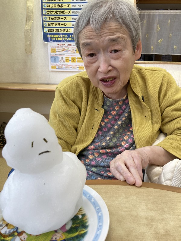 スタッフが中庭に出て小さな雪だるまを作りました。