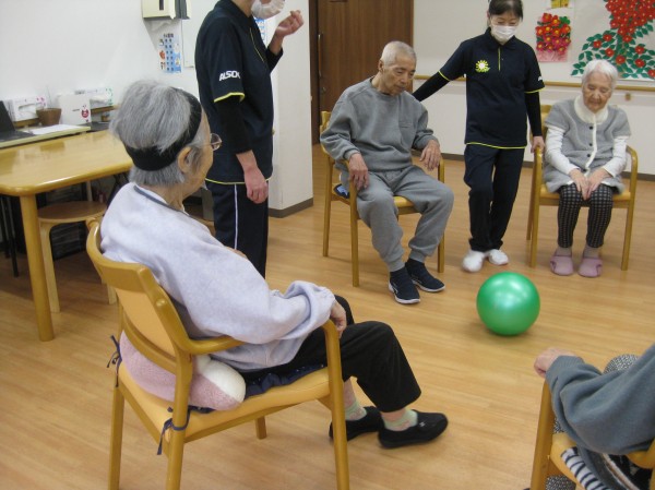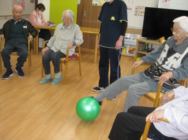 強いボールが飛んできました。ビックリです!! 職員も間に入って一緒に蹴りました(*^_^*)