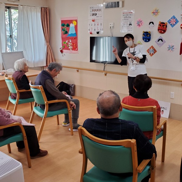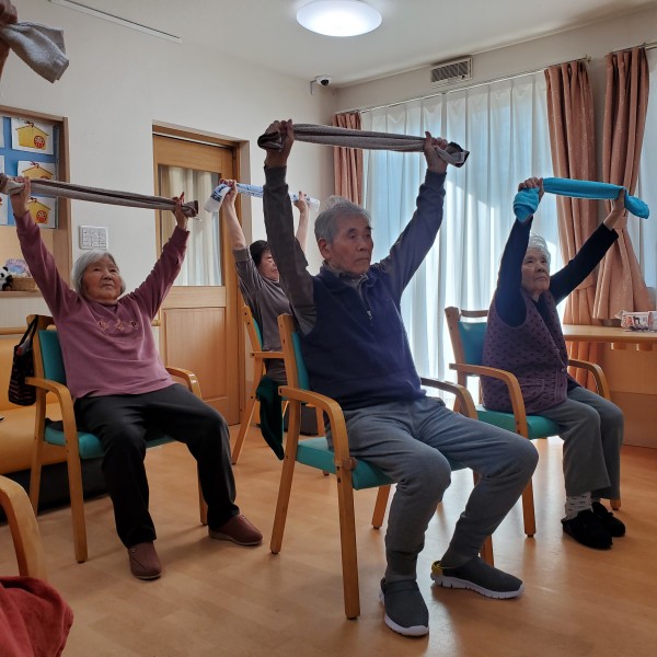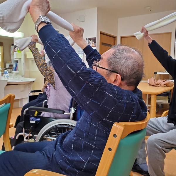 タオル体操でのタオルの使い方のレクチャーを