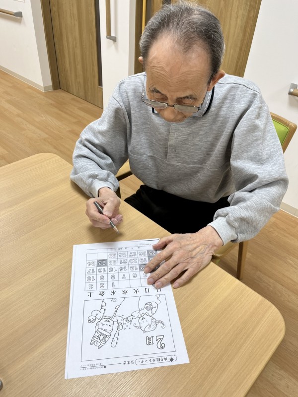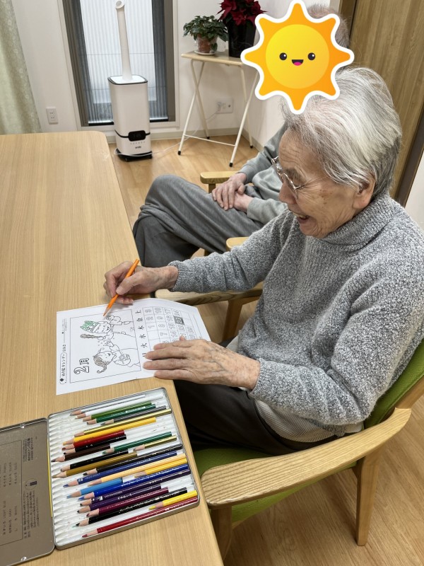 本日は、先日行った2月の塗り絵をご紹介したいと思います(*^^*)
