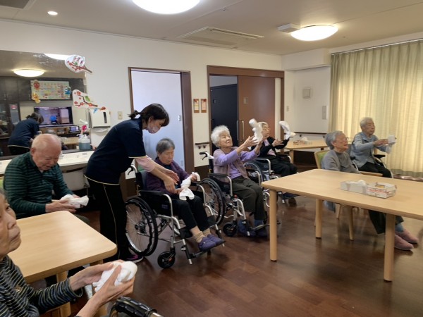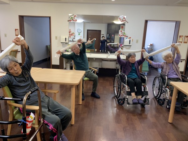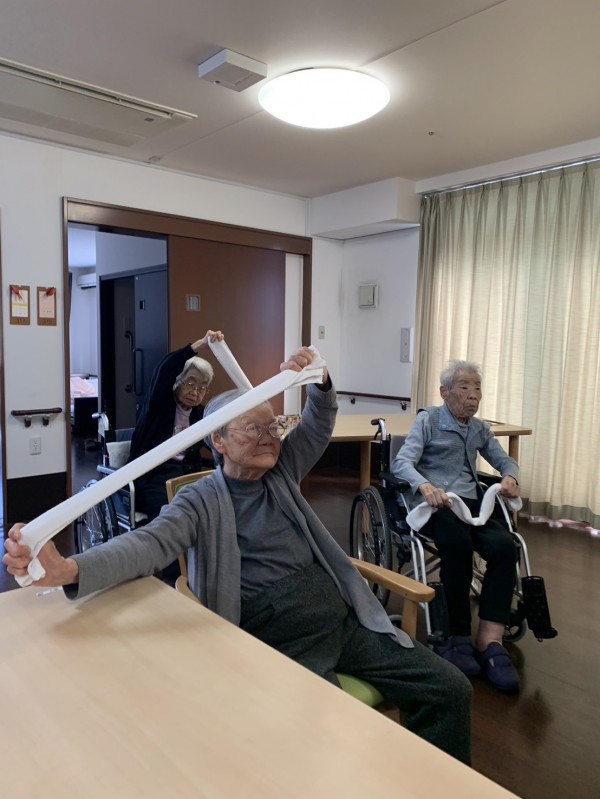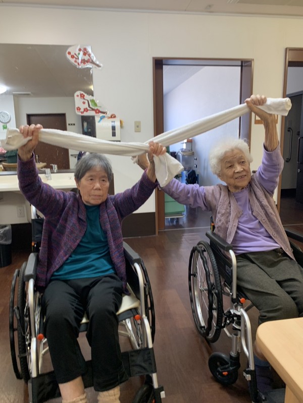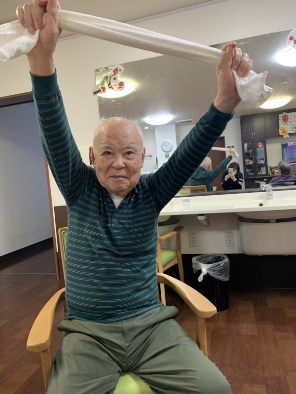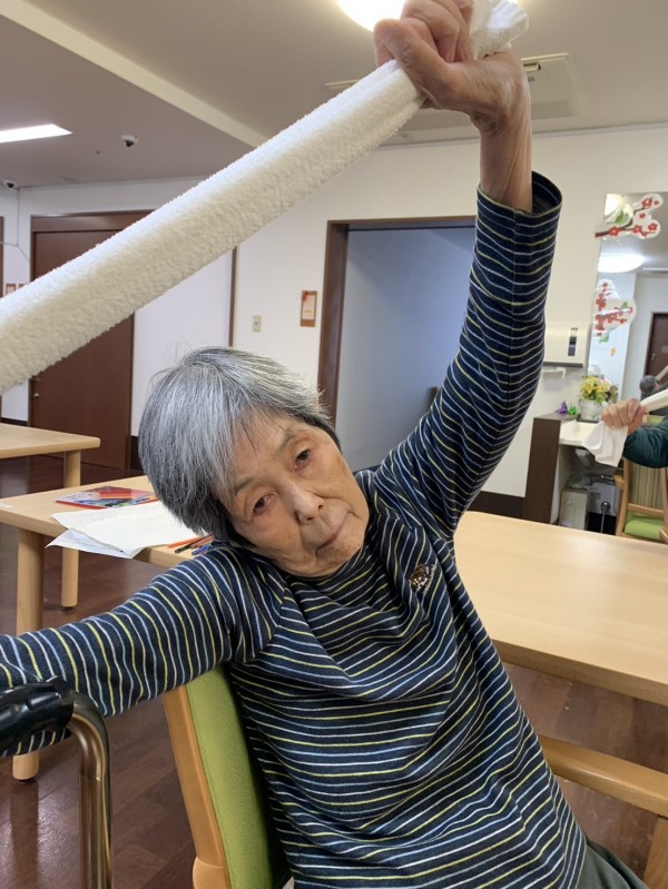 全身をほぐすタオル体操や腕を上下に振る体操を行いました。皆さんの筋力向上や血行促進に役立てられたと思います。