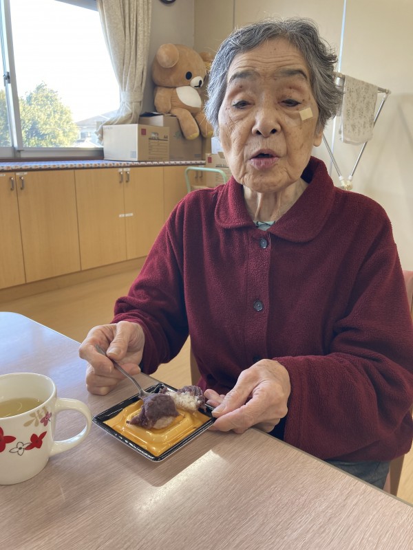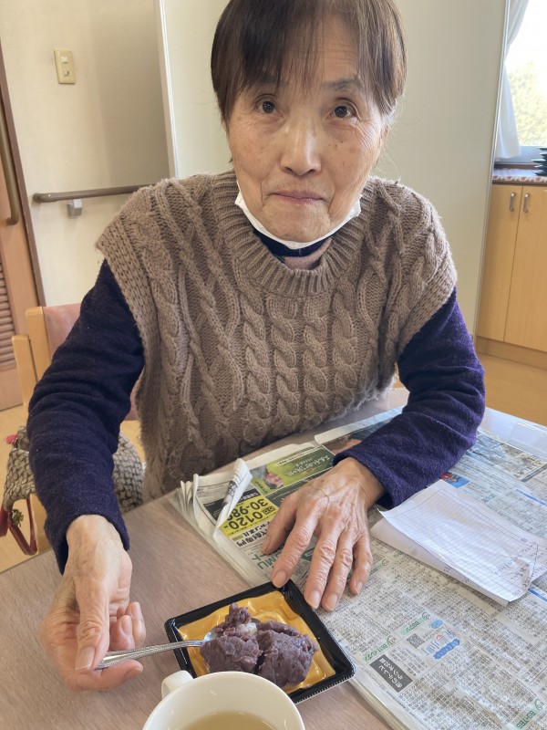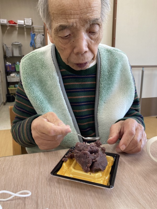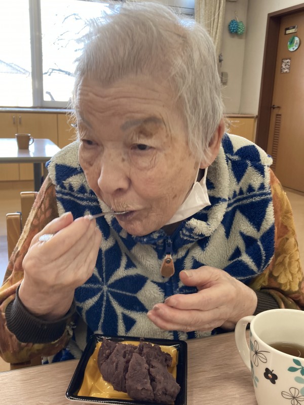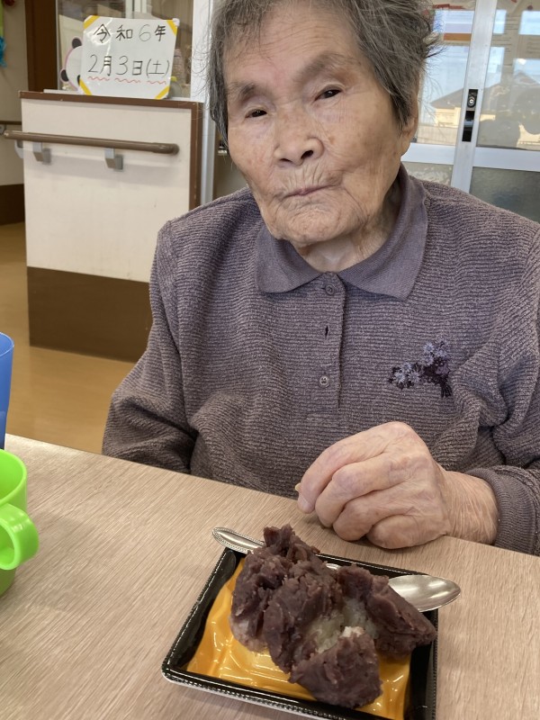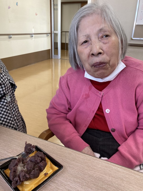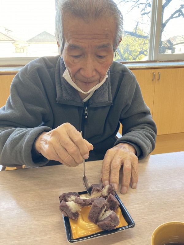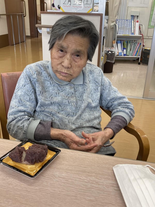 2月3日に行われた節分イベントでおやつに、ぼたもちをお召し上がりいただきました。