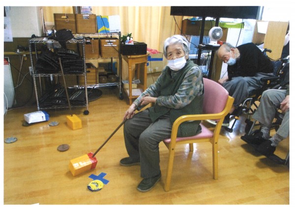 本日午後のレクリエーションは【ホールでゴルフ】職員お手製のクラブとボールで点数ポイントを目指し椅子に座ってボールを打ちます。よーく狙ってもなかなか思う様な場所に行ってくれないジレンマがゲームを面白くさせるのでしょうか?コツをつかんだころ終わりの時間が来てしまうのが残念ですね、皆様お疲れ様でございました。