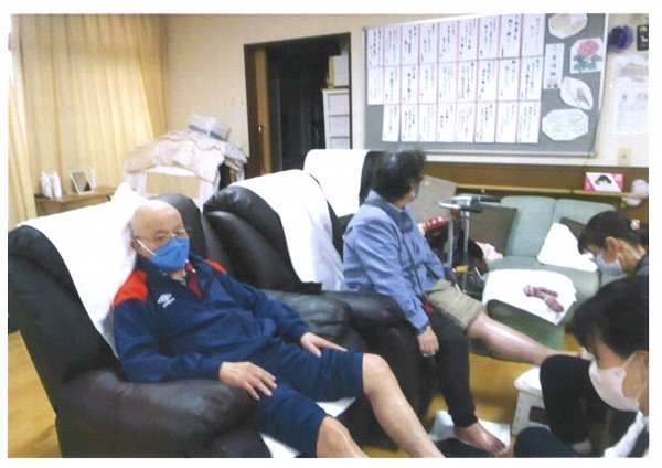 本日は【シニアセラピー】シニア向けのリンパドレナージュ、心と体に働きかける癒しのサービスです。優しい手のぬくもりとコミュニケーションを大切にした新しい療法とのこと。『顔面療法』では、フルーティーな甘い香りの化粧水でリンパの流れをやさしく促し、脳の活性化を促すツボ、唾液腺なども刺激し表情もイキイキ‼嚥下困難予防にもおすすめです。『足裏療法』刺激の少ない植物性のオイルで、リンパの流れを促す優しいタッチの施術です。ふくらはぎの筋肉をほぐすことで、体全体の血行を促すと言われています。むくみや冷えにもおすすめ、当デイサービスではアーモンドオイルを使用しています。顔、足ともに施術後は効果を実感していただけると思います。ご利用お待ちしています♪