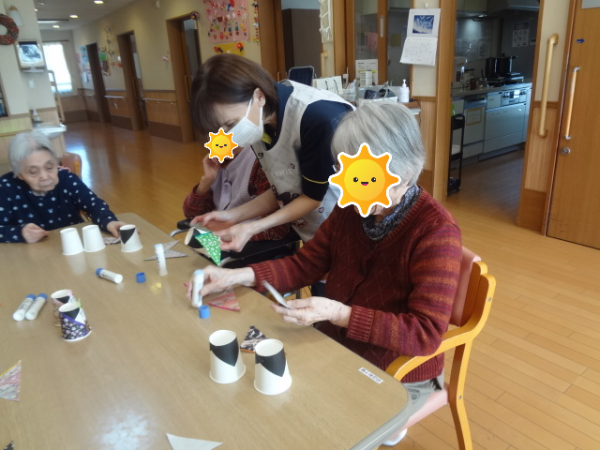 さて、、、今回は3月3日「ひな祭り」に向けて紙コップと折り紙で可愛いひな人形を製作しました(^^♪