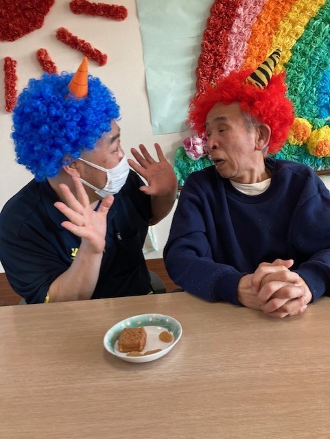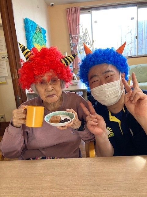 鬼さんたちとの記念撮影の後はおやつです!