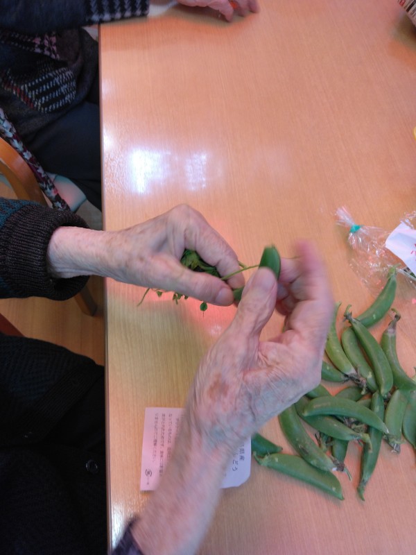 筋取りをお願いすると、あぁぁぁぁぁぁぁぁぁっという間に、きれいさっぱりなスナップえんどうさんになりました!!