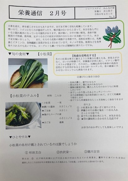 遅くなりましたが栄養通信2月号をご紹介いたします。