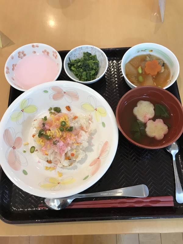 3月3日の日曜日、ひな祭り。イベントは後日行う事になっていますが、厨房からはお昼にちらし寿司がだされ、美味しそうだったのでちょっとお見せしたいと思います(#^.^#)