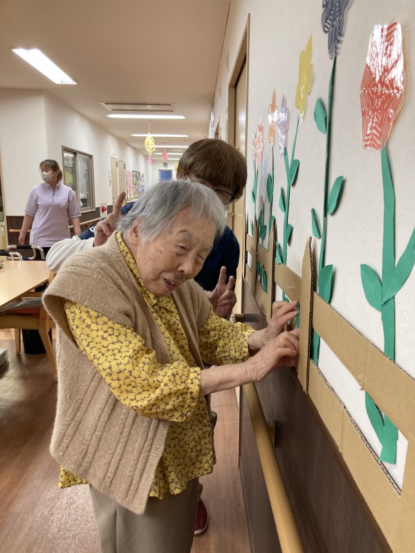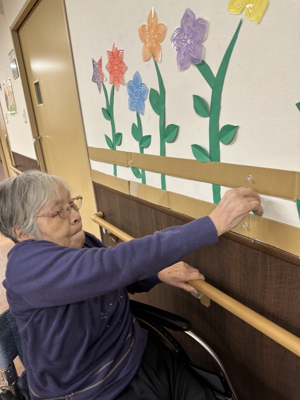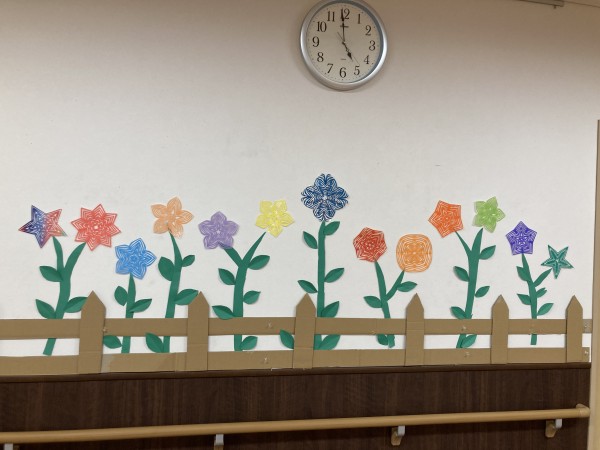 少し前に各階のホールの壁に花畑を作りました⚘