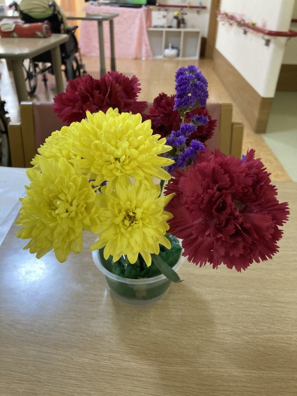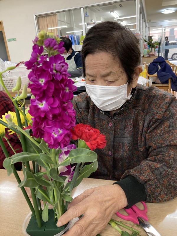 月に1回のデイサービス主催「フラワーアレンジメント教室」に参加しました!