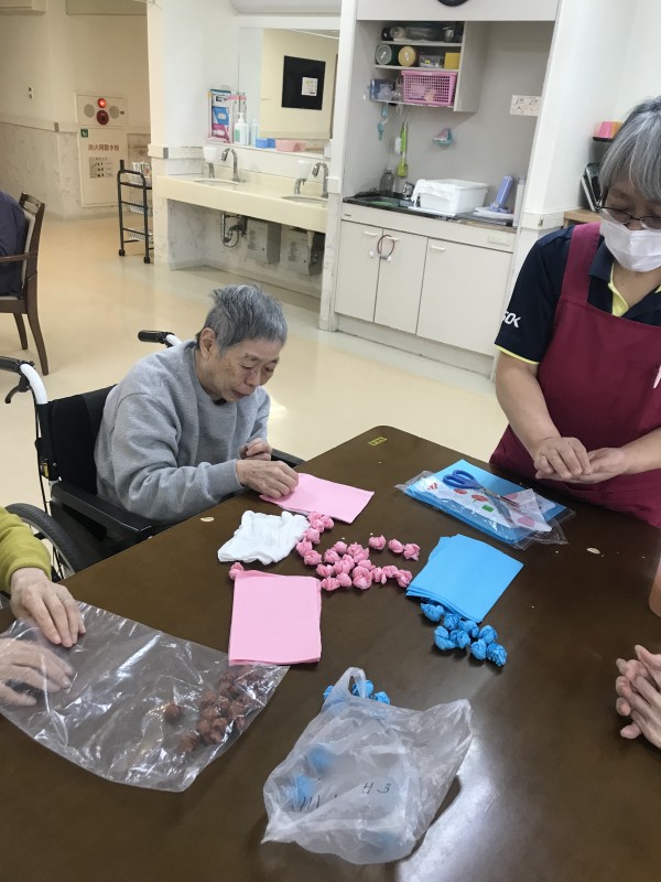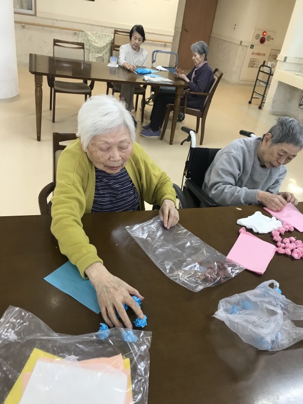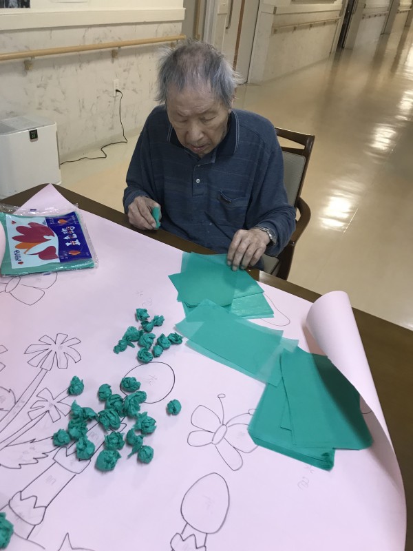 皆様に手伝っていただき、春に向けての壁画を作っています♡