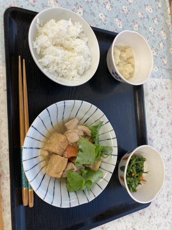 ・鶏と厚揚げのみぞれ煮 ・クリーミーベーコンポテト ・春菊の中華和え です!