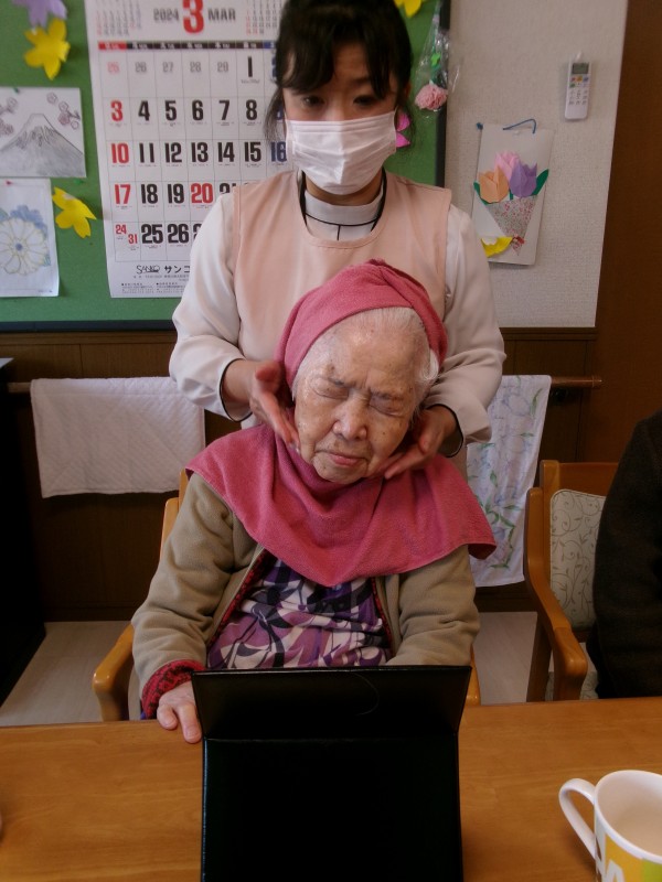 3. 3/13 シニアセラピー癒しの時間~こちらはフロアで行いました。表情が出てみるみる明るい肌になり、ご本人もご満悦(*´艸`*)