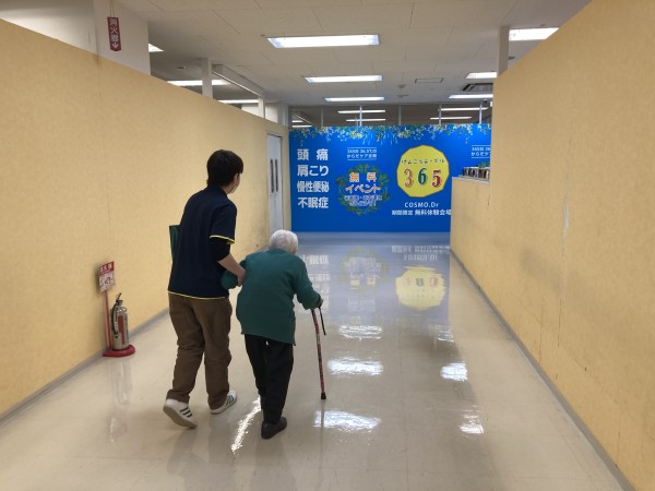 駐車場に着いて、DAISOまでの道のりを歩んでいきます。長い通路ですが歩いていきますよ♪