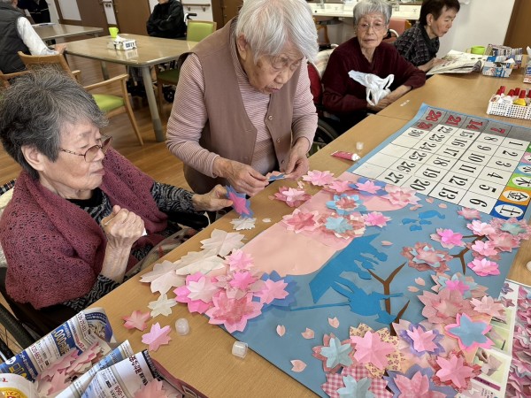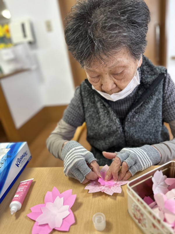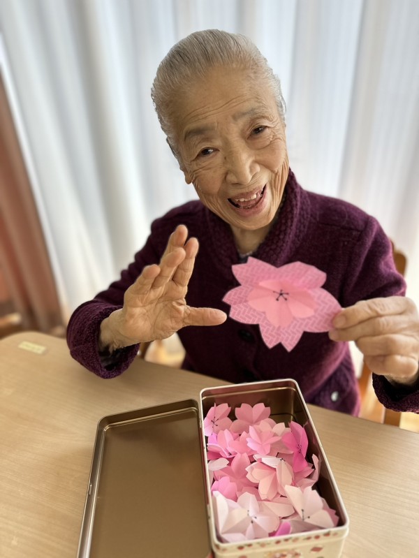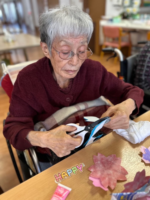 折り紙を折る・切る・貼るなどの作業を通じて、手指の巧緻性の維持・向上を図る。