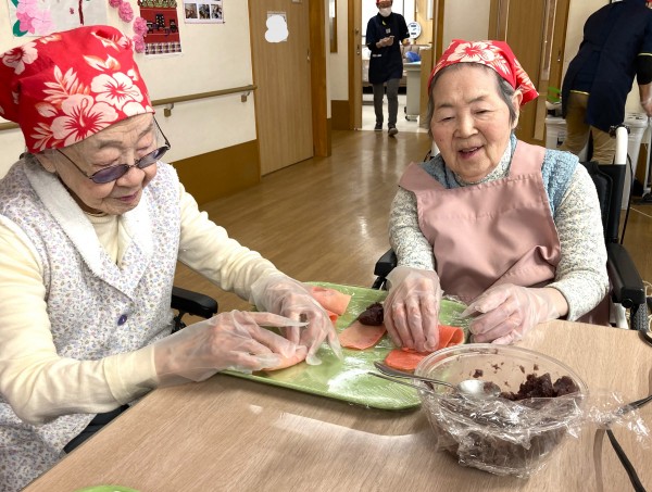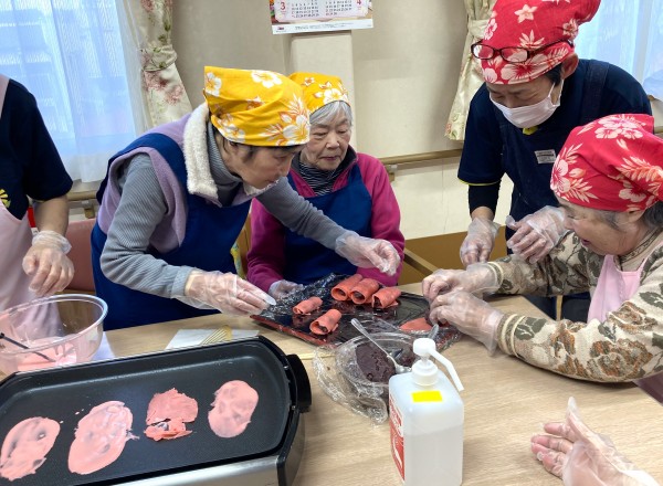 生地が焼きあがったら、今年も美味しいと評判のヤオコー産のあんこを包んでいきます♪