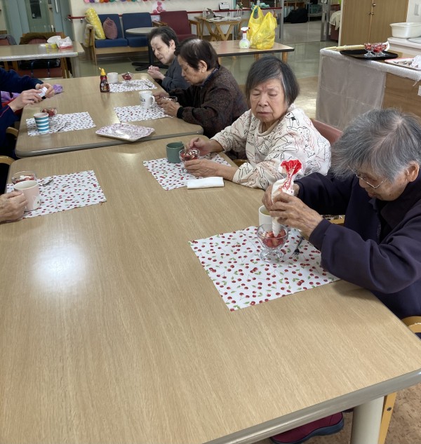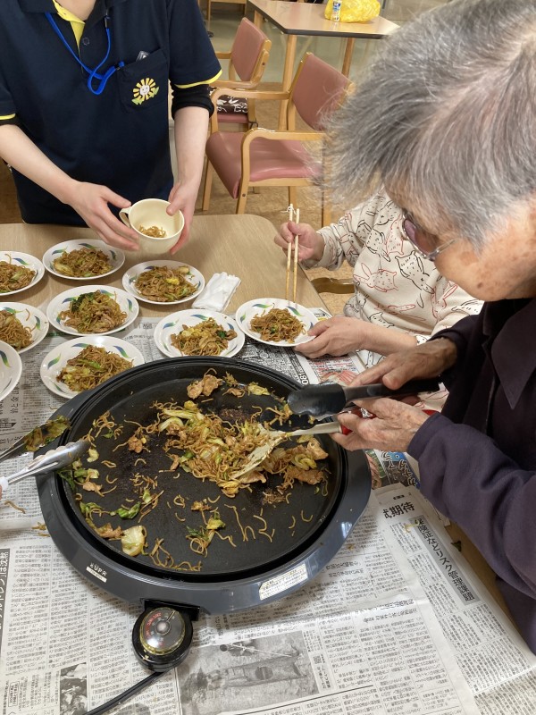 今日の午後はみなさまとスタッフ、みんなで協力してソース焼きそばといちごのミニパフェを作りました!