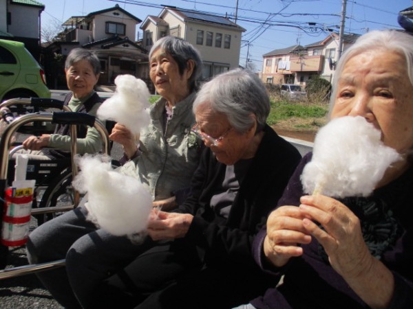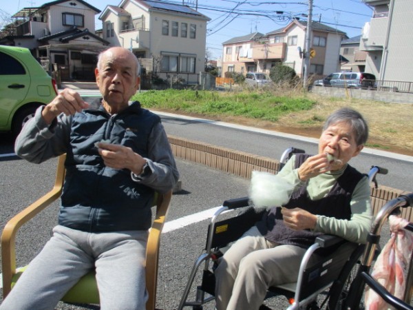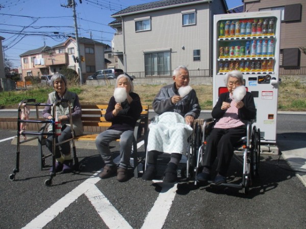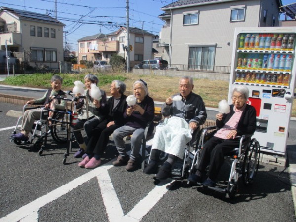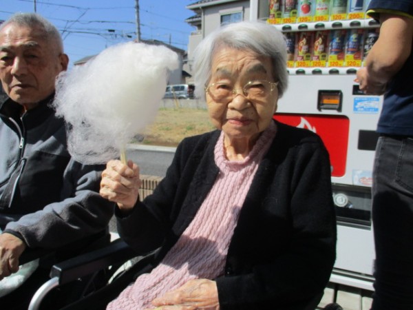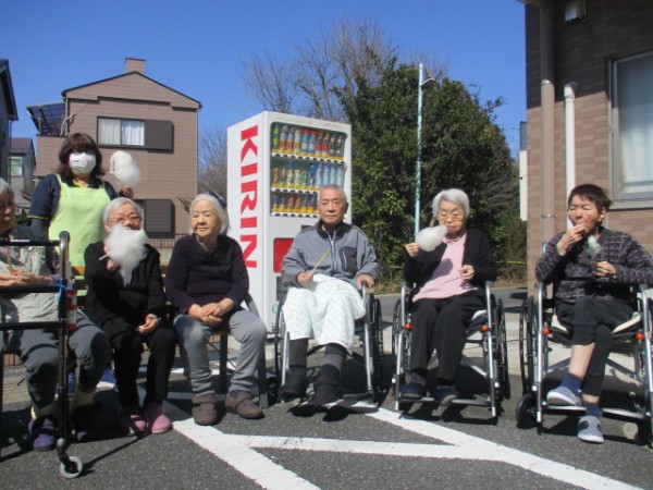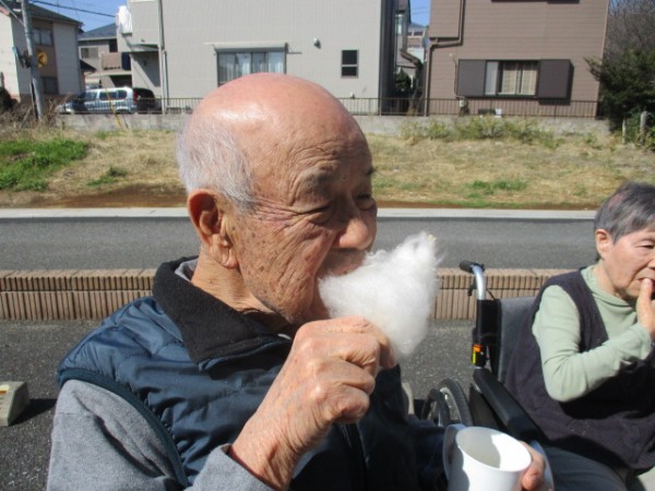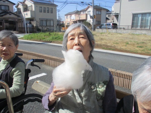 今日は青空が広がり気持ちいい陽気なので昨日大好評だった綿 あめを外で食べました\(^o^)/
