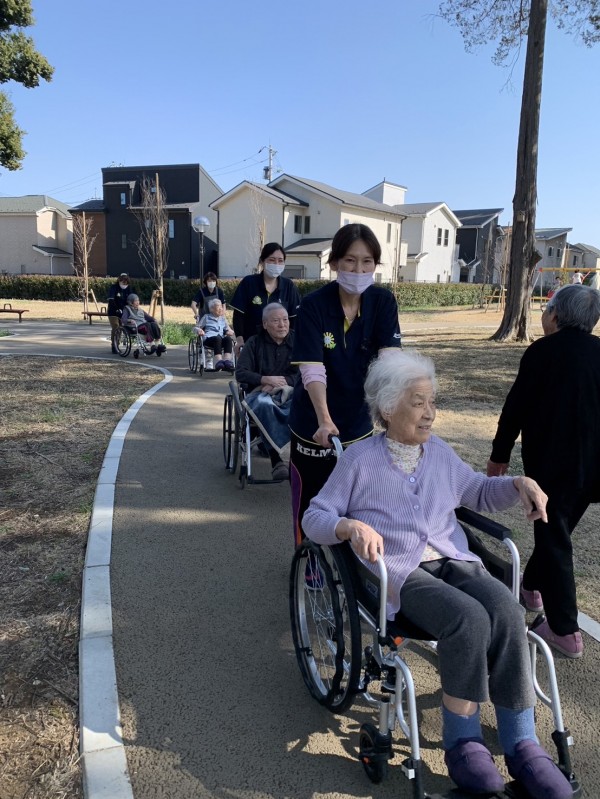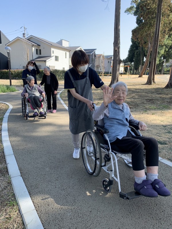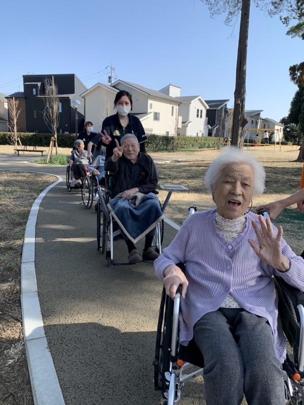 今日は近くの公園へ のんびりとした散歩レクリエーションでした。