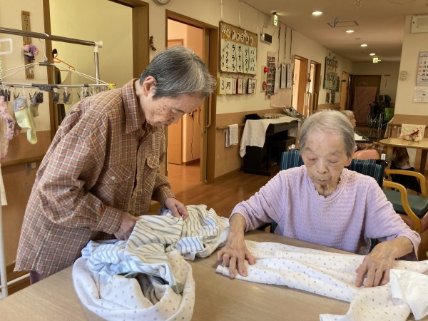 入居者様にあったレベルで洗濯物たたみ、食器拭き(お手伝い)をしていただいてます。日によって身体の調子に波があるので様子を見ながらいつもお願いしております。