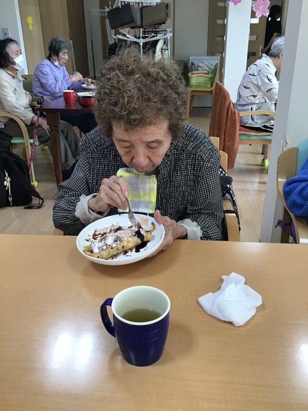 トッピングのフルーツをご利用者様にカットしてもらいます♪