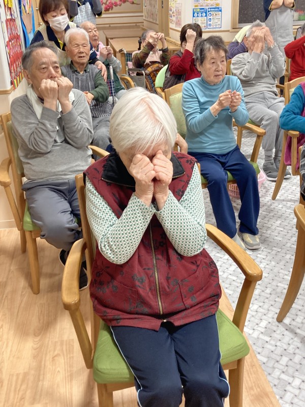 まずは腹式呼吸から。声を出すと上手く出来ました!