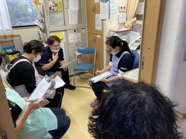 ホーム長、ケアマネ、ケアプラン作成担当者、各階フロア長、本部営業部役員、そして草加の職員がこうして集まり、日々の申し送り以外の共有すべき事項など話し合っています。