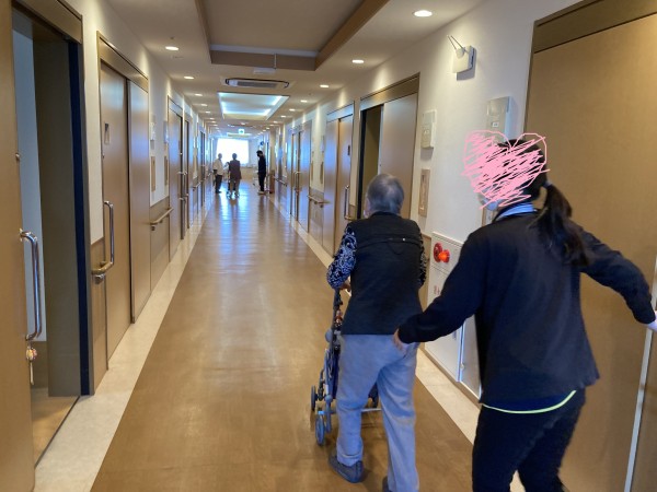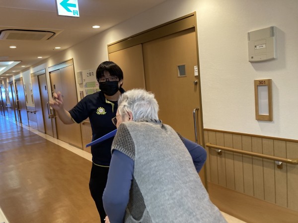 職員が各居室へ周り、「火事です! 避難指示に従い移動してください!」 とお伝えして回ると、皆さま