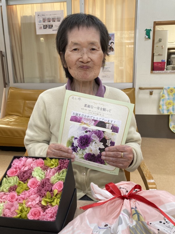 先日、ホームにて1Uの入居者様のお誕生日会をお祝いしました。