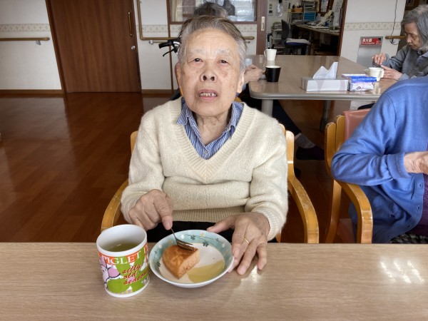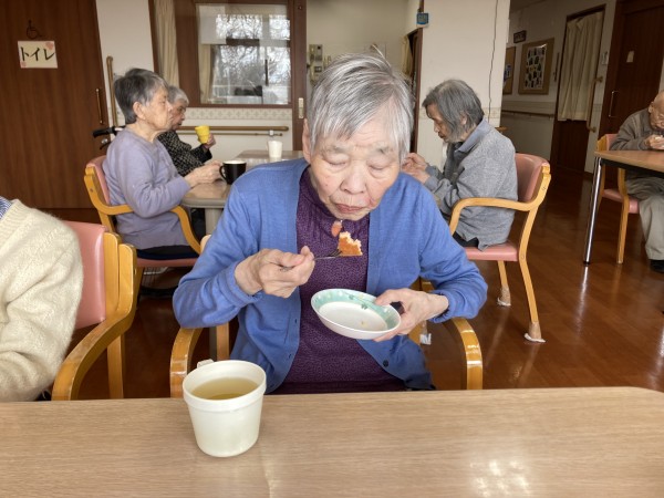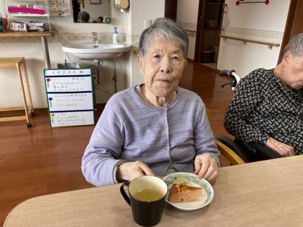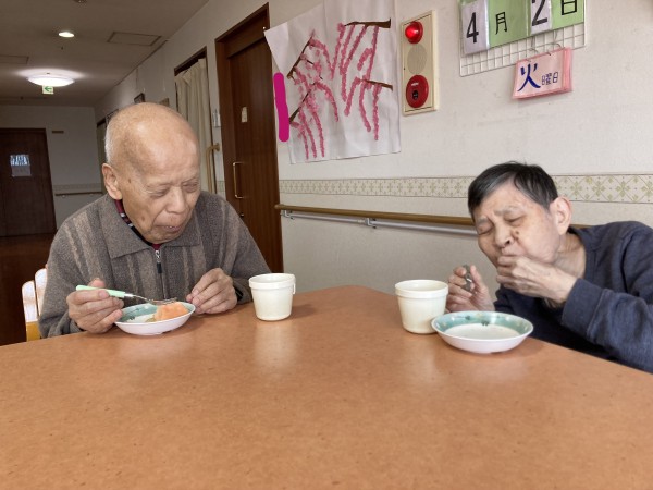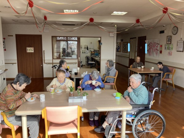 少しずつ咲き始めた桜を見ながら、ほんのり桜色のケーキを食べ、皆さんとっても喜んでくれました(*^_^*)