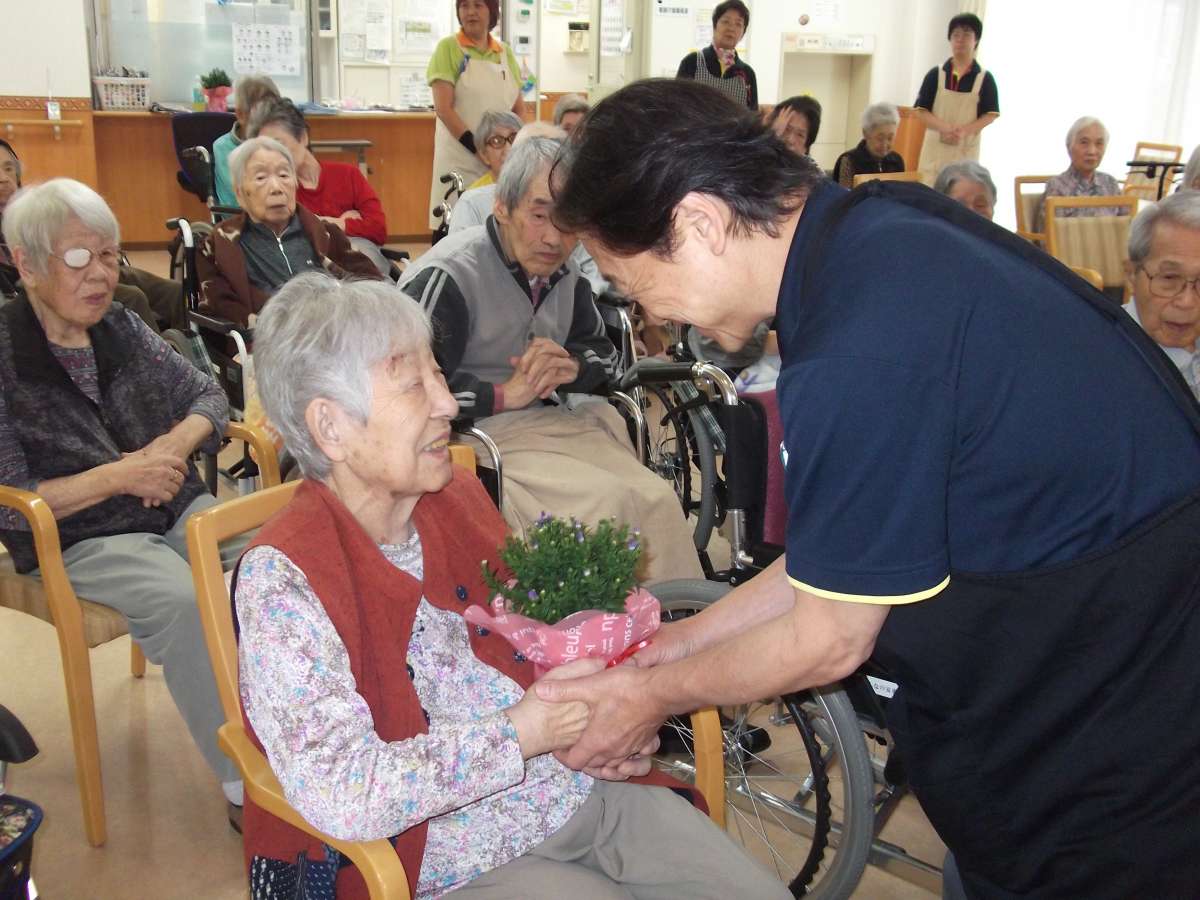 施設より利用者様全員にちょっとしたお花をプレゼントをさせていただきました。