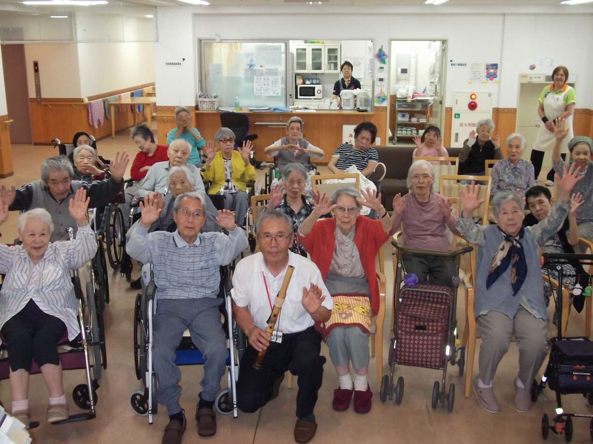 尺八演奏のボランティアの方に来ていただき利用者様全員で尺八の伴奏による