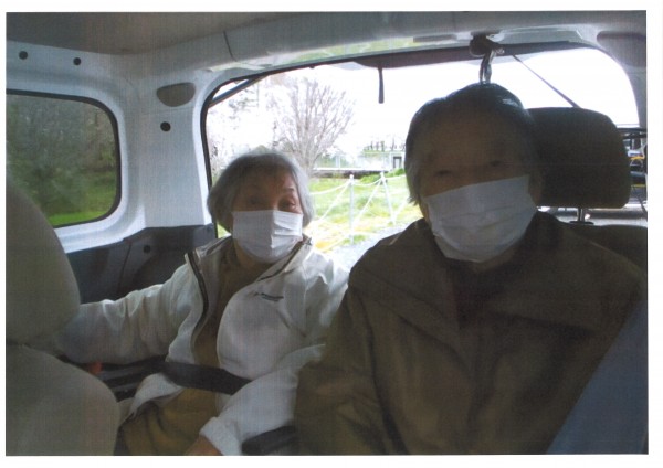 あいにくのお天気。雨もなかなか上がらずドライブのみになりました。公園によらない分少し遠くの伊佐沼の桜もみてきました。外には出られませんでしたが、花びらの絨毯の上を車で走るのが皆様に大好評。素敵なお花見ドライブになりました♪