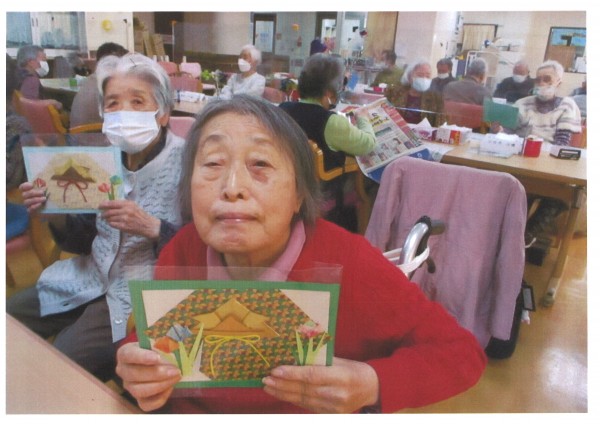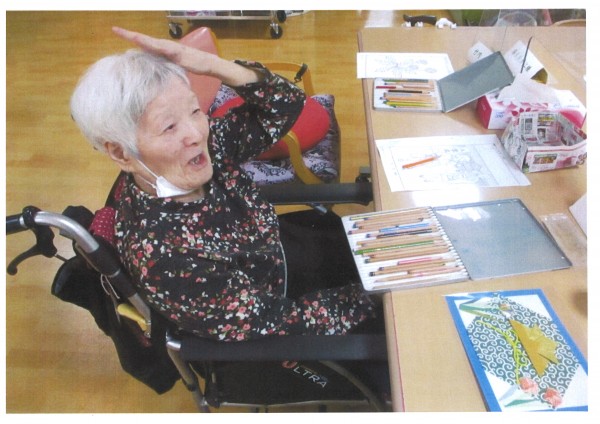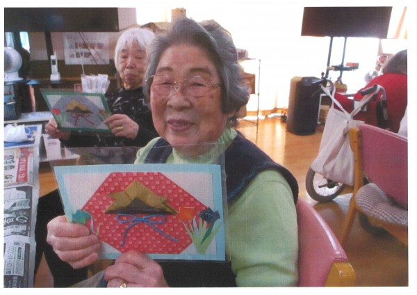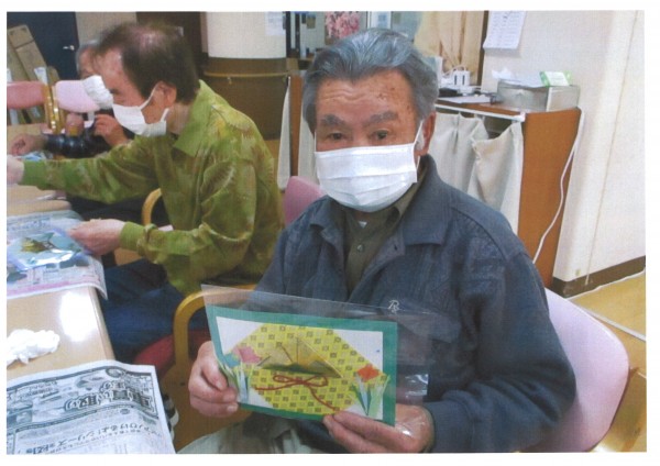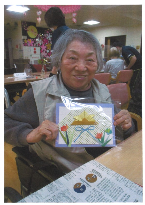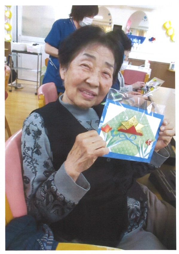 本日午後のレクリエーションは【五月節句のお飾り制作】です。色とりどりの兜が映える、素敵な五月の飾りを作成していただきました。ご自分の作品と一緒に記念撮影しました。作品もステキですが、すてきな笑顔にはかないませんね♪