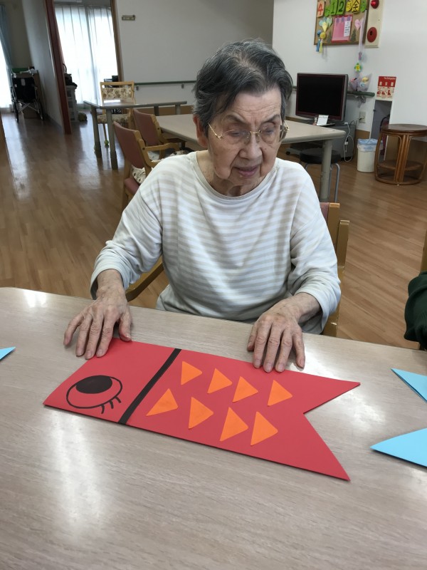 色画用紙でこいのぼりを作り、来月になったら桜の飾りとchangeします。