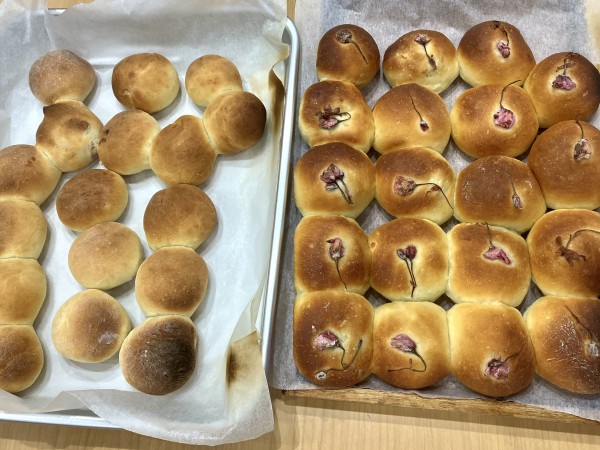 右側は桜の塩漬けをのせた『特製あんぱん』ですよ♪