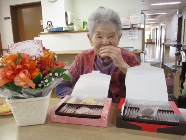 ご家族様からお花とお菓子が届き嬉しそうでした!