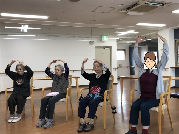 おなじみとなって来ましたいきいきリズム体操です。息の合った動きをどうぞ!!