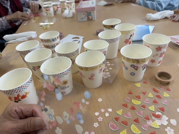 そして本日は、ゲームレクでよく使う『紙コップ』を、マスキングテープやシールで可愛くデコって頂きました⭐︎