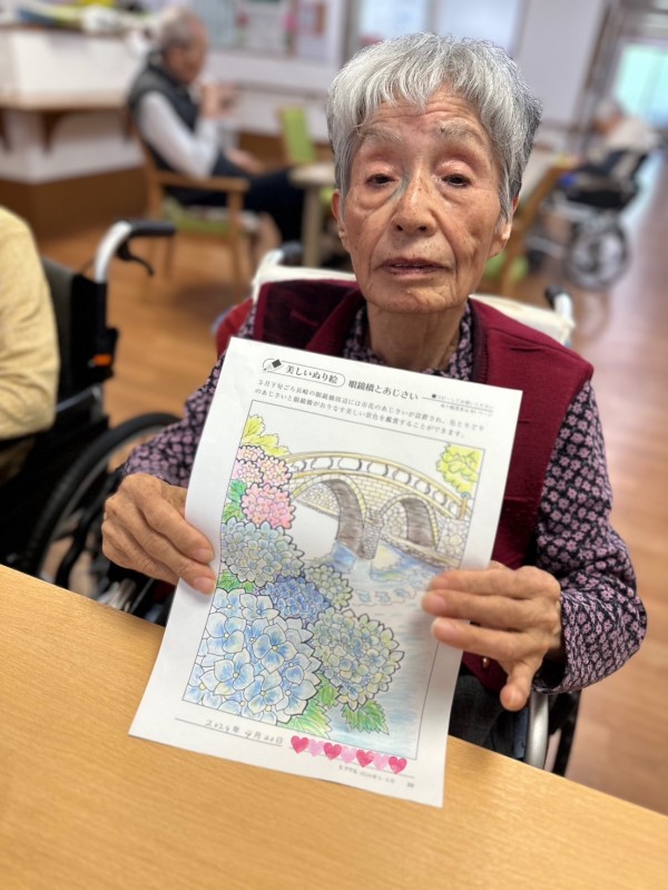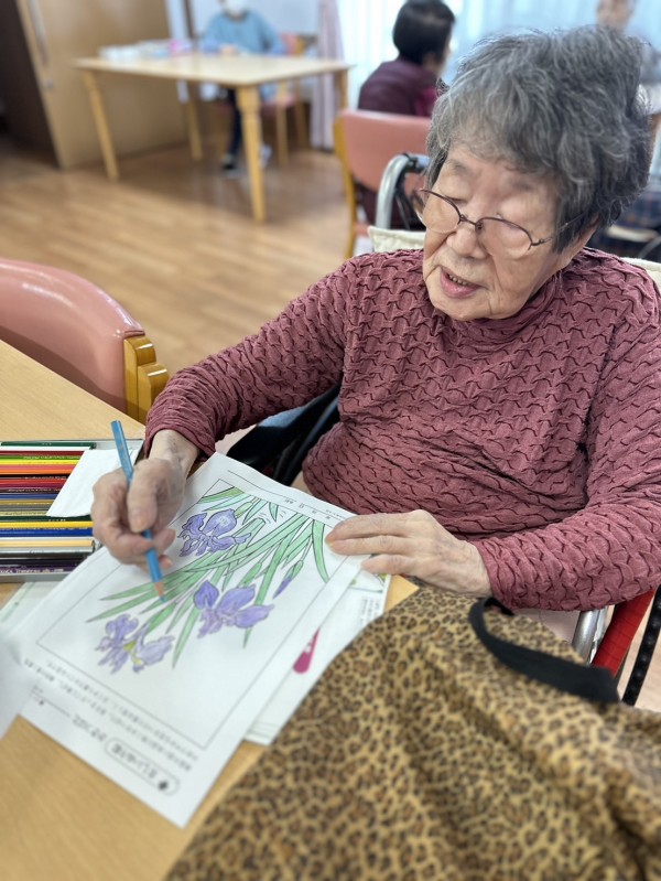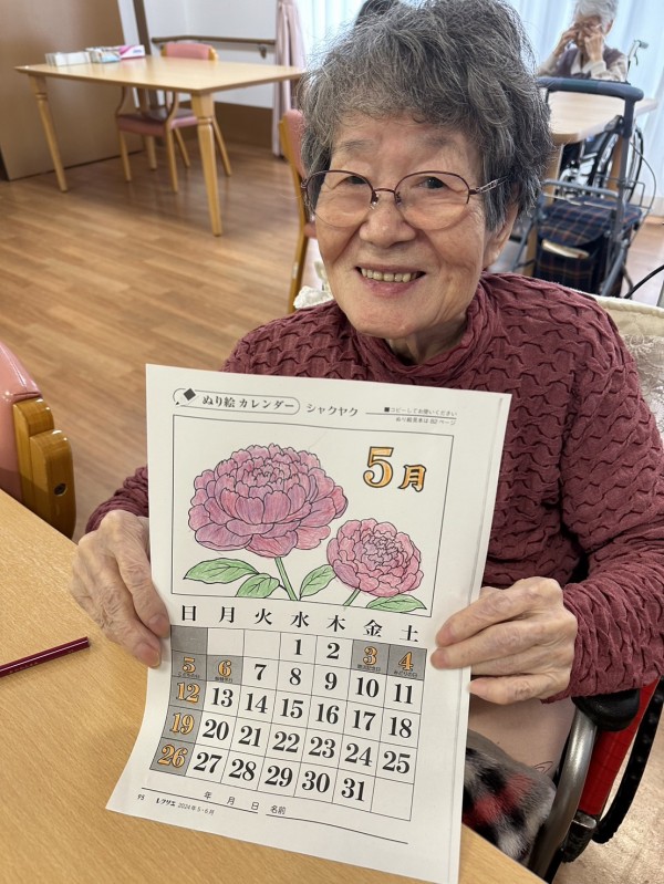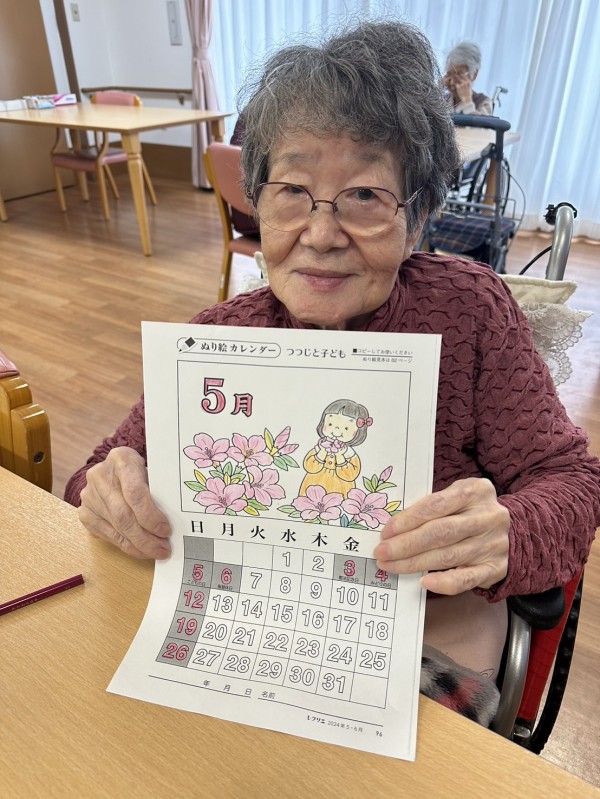 『5月の塗り絵が完成したんだけど、見てくれる〜?』