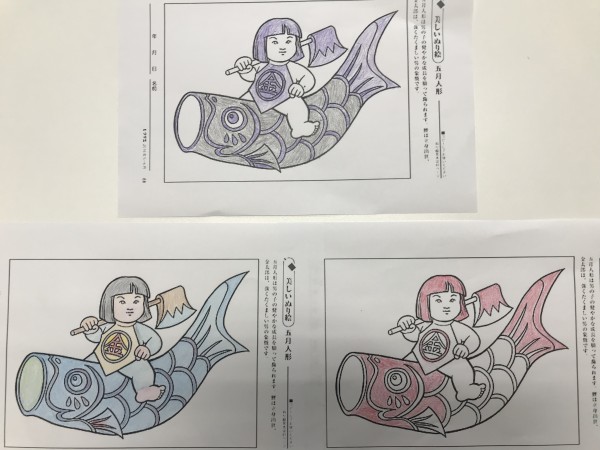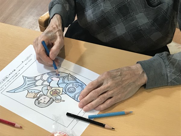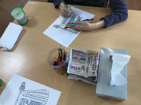 子供の日も近づいてきたのでちなんだ塗り絵をご利用者様に挑戦してもらいました。