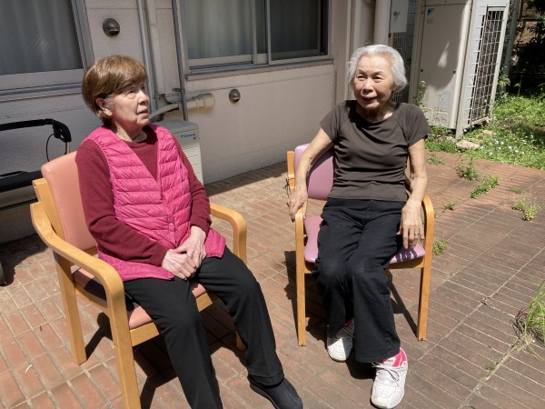 ホームでは、中庭があるので外気浴として日光浴をしました。