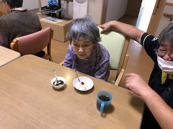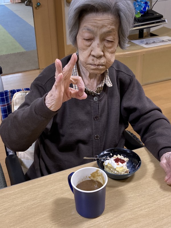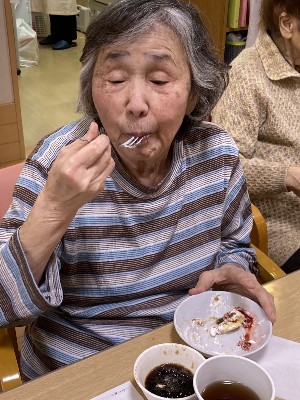 利用者様皆さんで手作りケーキを召し上がり