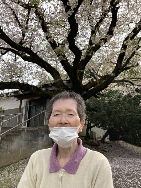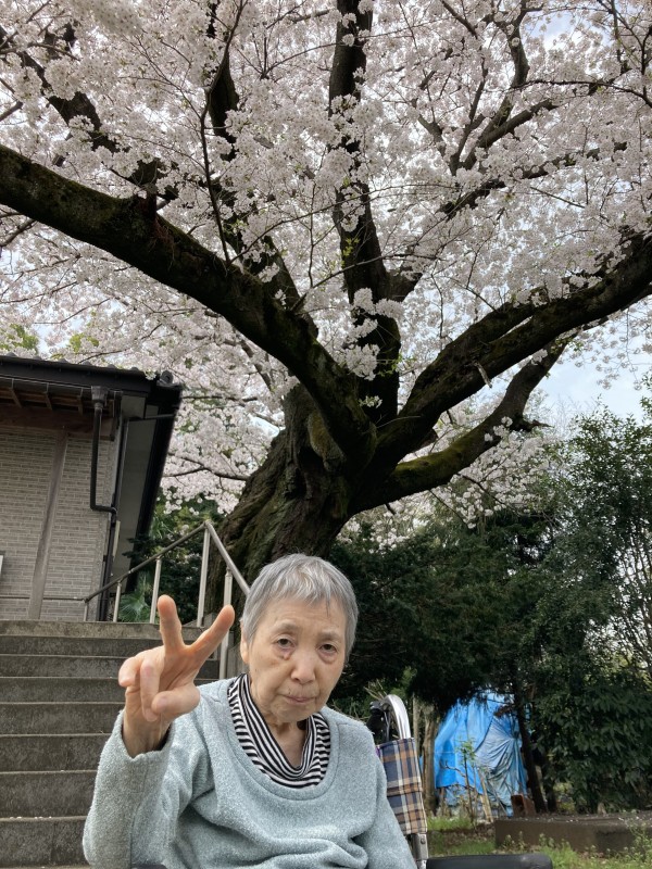 満開の桜の下で、入居者様たちと記念撮影をしました。