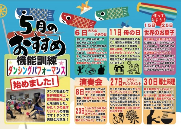 「機能訓練ダンシングパフォーマンス」を始めたり、「世界のお菓子・作ってみよう!」や