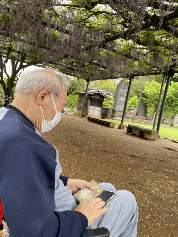 藤の花をご覧になりつつ、スマホで撮影されるご利用者様のお姿も見られました♪